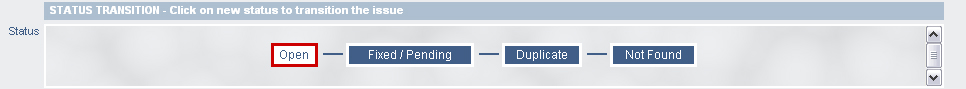 There are several special field types that you may see when using ExtraView. For example, the Status field may be displayed as follows, allowing you to select the status you want to transition an issue into by clicking on a button.