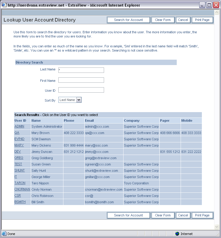 - Use the fields provided to search for the user whose name you want to find. Notice that you can use '*' as a wildcard entry to search through many names at one time