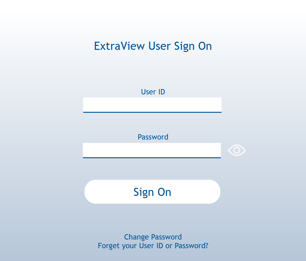 Before using ExtraView, you must sign on to the system by entering a valid combination of your user ID with a password.