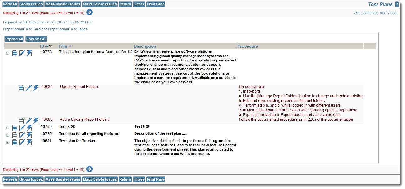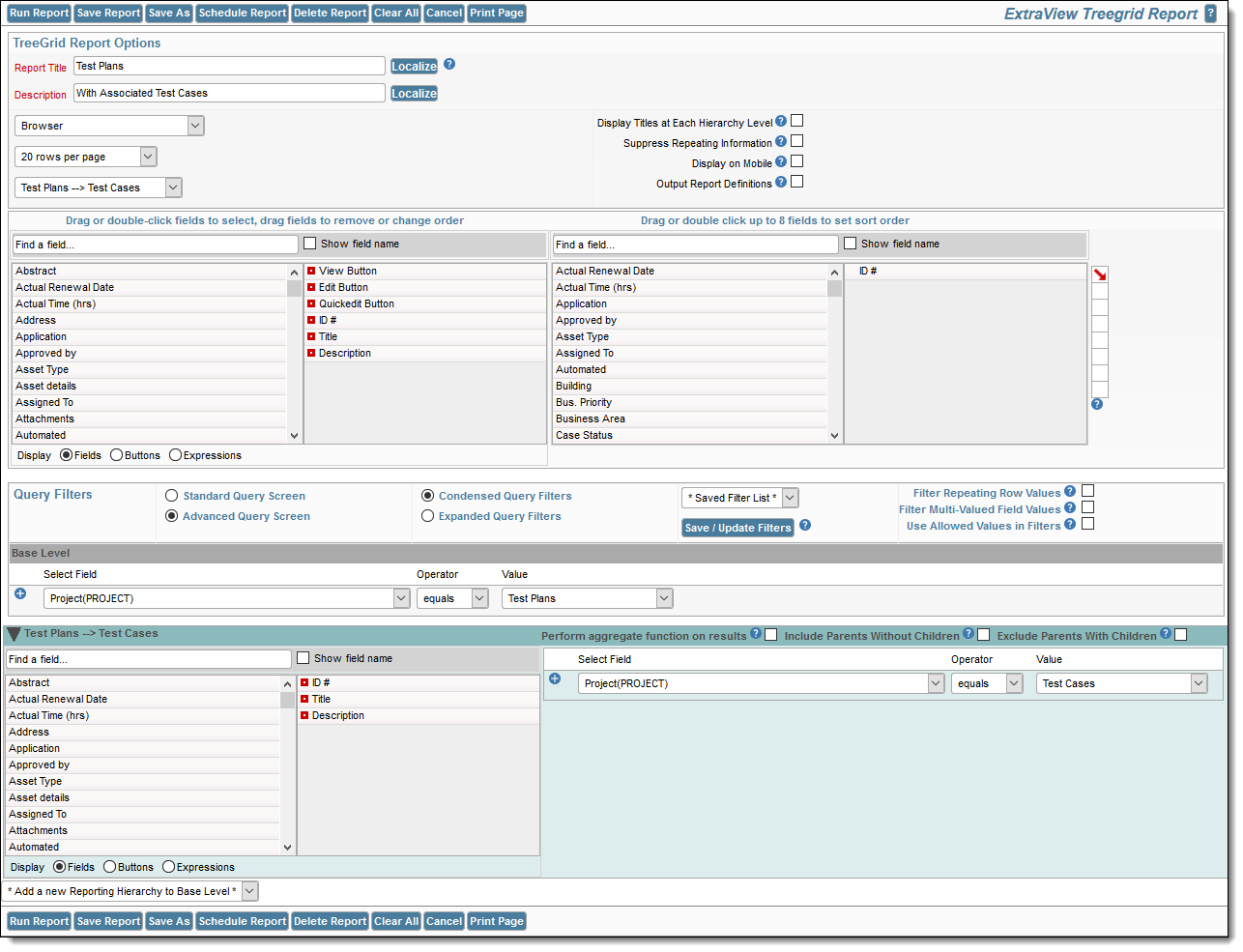 Treegrid Reports are reports that you design to display only those fields that you select, as branches on a tree. This implies that the issues on the report are members of relationship groups, typically in parent-child relationships. Hierarchies up to eight levels deep are supported.