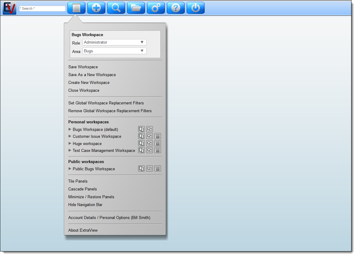 Additional information: http://docs.extraview.com/extraview-23/end-user-guide/workspace-interface/navigation-bar